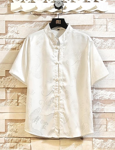 Муж. Рубашка Рубашка с китайским воротником Рубашка с воротником-стойкой Летняя рубашка Повседневная рубашка Кнопка рубашка Черный Белый Красный Серый С короткими рукавами Полотняное плетение