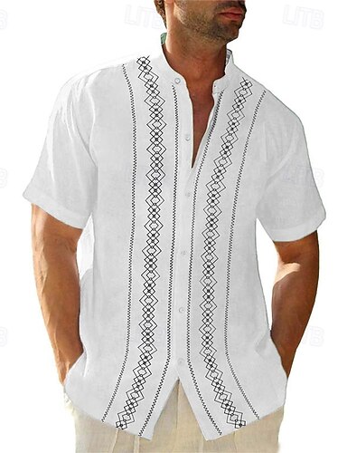 Муж. Рубашка гуаябера Летняя рубашка Повседневная рубашка Кнопка рубашка Черный Белый Синий Зеленый Серый С короткими рукавами Бохо Пейсли Дамаск Сплошной/однотонный цвет