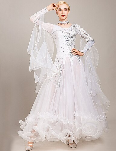 Бальные танцы Платье Стразы Вышивка Жен. Выступление Учебный Длинный рукав Спандекс Органза