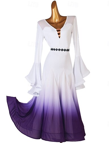 Платье для бальных танцев, украшенное кристаллами / стразами, женское, для выступлений, вечеринок, с длинным рукавом, для современного вальса, для соревнований по танцам