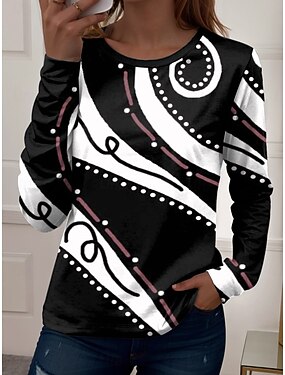 Женская футболка с длинным рукавом круглый вырез длинная туника графика абстракция винтажный стиль классический обычные топы ежедневный выход выходные принт белый предзима