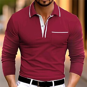 Муж. Деловое поло Рубашка для гольфа Повседневные Спорт Лацкан Длинный рукав Мода Классический Полотняное плетение Пуговицы Весна & осень Стандартный Винный Серый Деловое поло