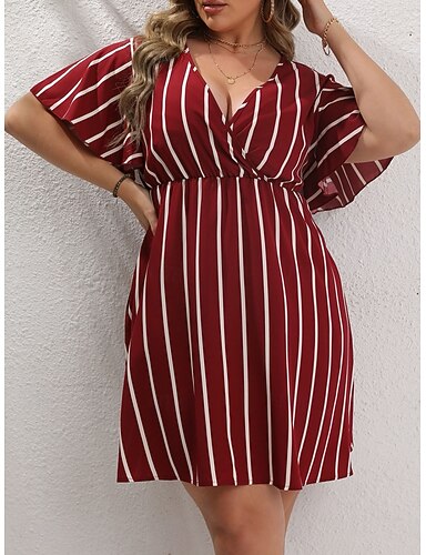 Жен. Большие размеры Повседневное платье Полоски V-образный вырез С короткими рукавами Лето Весна Мода Современное На каждый день Мини-платье Повседневные Праздники Платье