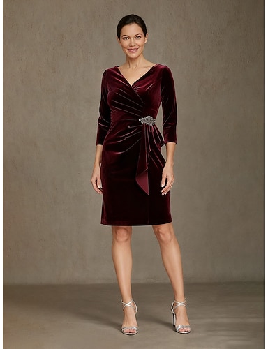 Рождество Женское Бархатное Платье Миди Платье Обернутое Элегантное Праздничное День Рождения Свадьба Свадебный Гость Обычная Подгонка Однотонный Длинный Рукав V-образный Вырез Вино Весна Осень Зима