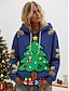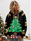 Жен. Pullover Худи Новогодняя ёлка Мода Уличный стиль На каждый день Длинный рукав Капюшон Обычные топы На каждый день Повседневные Кулиска С принтом Черный Красный Синий Зеленый Весна Осень Зима