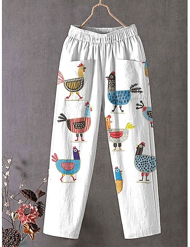 Жен. Чино Мешковатые брюки Прямой силуэт Отпуск Винтаж Мода Полная длина Завышенная Графика Животное Рисунок Мягкий Дышащий Неэластичная Официальные Отпуск Для улицы Белый Розовый Красный Зеленый