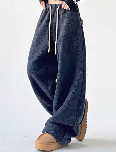 Жен. Штаны Флисовые штаны Широкие Отпуск Мода Уличный стиль Полная длина Завышенная Сплошной цвет Карман Эластичный пояс удобный Мягкий Удобный Эластичная на открытом воздухе Для улицы