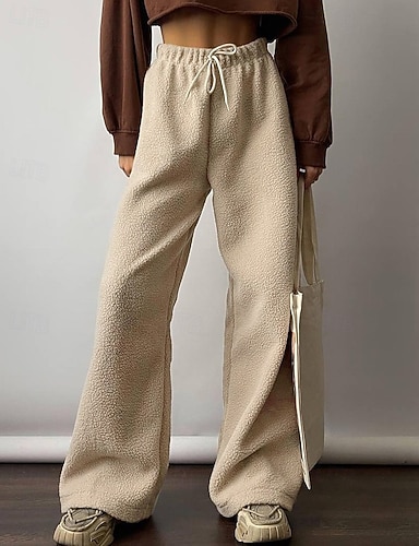 Жен. Широкие Чино Уличный стиль На каждый день Полная длина Нормальная Полотняное плетение Кулиска Карман Эластичный пояс Мягкий Слабоэластичная на открытом воздухе Для улицы Абрикосовый Темно-русый