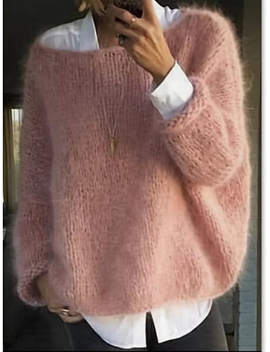 женский свитер пуловер свитер джемпер круглый вырез вязать вязаный весна осень домашний повседневный праздничный повседневный мягкий длинный рукав чистый цвет розовый красный