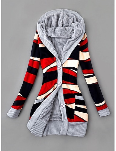 Жен. Вязаная ткань На каждый день Мягкий Геометрический принт Рельефный узор Капюшон Трикотаж Длинный рукав Обычные топы Вязать на открытом воздухе Повседневные выходные Розовый Красный Осень Зима