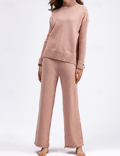 Жен. Вязаная ткань Свитер Co-ords Пуловер Уличный стиль На каждый день Сплошной цвет Ложная шея Трикотаж Асимметричный шов Длинный рукав Обычные топы Вязать Повседневные Праздники выходные