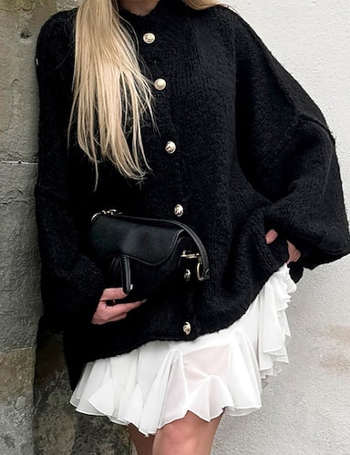 Жен. Вязаная ткань На каждый день Мягкий Чистый цвет Рельефный узор V-образный вырез Пуговицы Трикотаж Длинный рукав Обычные топы Вязать на открытом воздухе Повседневные выходные Черный Белый