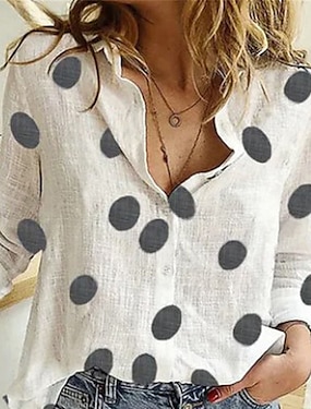 Жен. Рубашка Льняная рубашка С принтом Повседневные Стиль Классический Длинный рукав Рубашечный воротник Обычные топы Офис Повседневные Праздники Пуговицы Белый Синий Серый Весна Осень