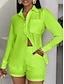 Жен. Комплекты шорт Болеро Топ Длинный рукав Рубашечный воротник Сплошной цвет Мода Уличный стиль Повседневные на открытом воздухе Офис Белый Зеленый Лето Стандартный