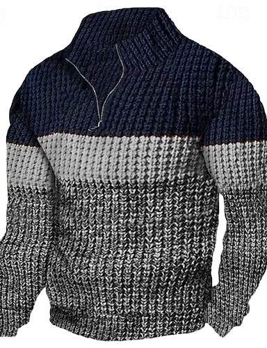 Муж. Пуловер Свитер Свитер-пуловер с застежкой-молнией на четверть Джемпер Рельефный узор Вязать Обычный Вязанные Полотняное плетение Четверть молния Современный современный Офис На каждый день Одежда
