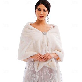 Меховые накидки Шали Женская накидка Однотонный Элегантный стиль Без рукавов Терилен Свадебные накидки С Перья / мех Назначение Свадьба Наступила зима