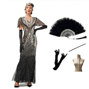 Винтажная коллекция Гетсби Длинный Платье для флаперов Платья Инвентарь Прозрачный Великий Гэтсби Свадебный гость Пайетки Пайетки Хэллоуин V-образный вырез Маскарадный костюм Жен. Хэллоуин Маскарад