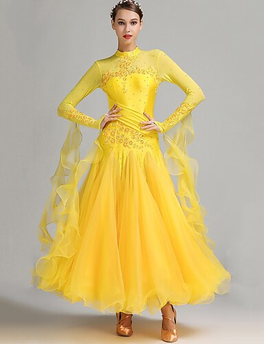 Бальные танцы Танцевальные костюмы Платье Стразы Жен. Выступление Учебный Длинный рукав Завышенная талия ЛИОЦЕЛЛ