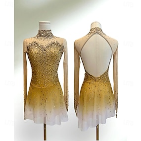 Платье для фигурного катания Жен. Девочки Катание на коньках Платья Желтый Пэчворк Отверстие для большого пальца Спандекс Сетка Эластичность Учебный Соревнование Одежда для фигурного катания
