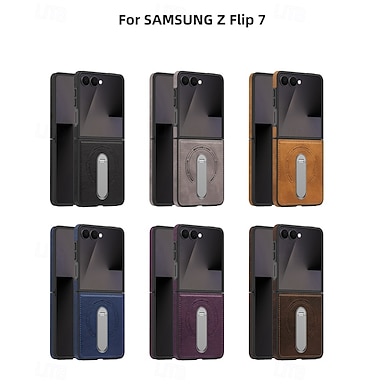 телефон Кейс для Назначение SSamsung Galaxy Z-флип 7 Z Flip 7 FE Z-флип 6 Z Flip 5 Z Flip 4 Кейс на заднюю панель Поддержка беспроводной зарядки Откидная подножка Защита от удара Ретро ТПУ Кожа PU