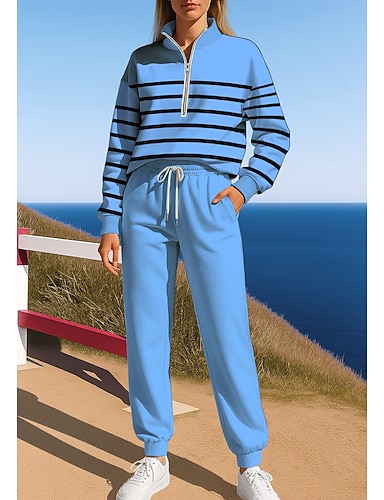 Жен. Толстовка Спортивный костюм Тренировочный костюм Кулиска Молния Геометрический принт Куртка и спортивные штаны Комплект спортивной одежды Весна Синий product tag