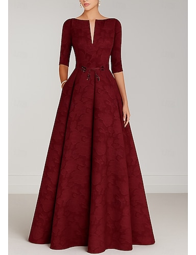 Платье для матери невесты Платье Гостя на свадьбе Элегантное Простое Круглое горло Длиной до пола Полиэстер 3/4 рукав с кружевом Однотонный цвет