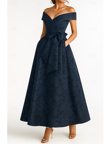 Бургундское и синее платье для матери невесты A-Line вечернее платье элегантное формальное длина до пола короткие рукава открытые плечи карманы нейлон с бантиками