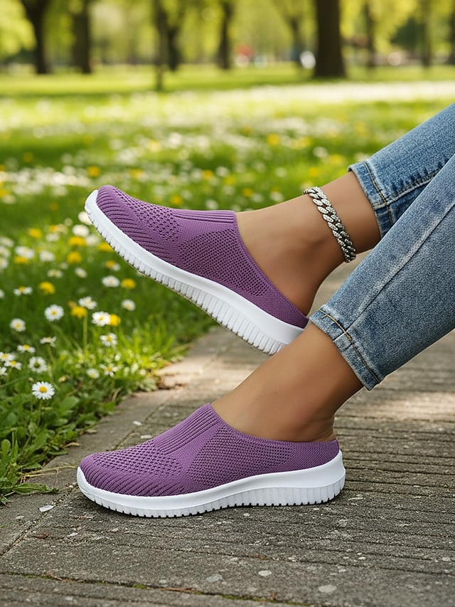 Женские дышащие вязаные прогулочные туфли без шнурков – легкие эластичные сетчатые мюли для путешествий, повседневной носки, покупок и прогулок на свежем воздухе. #10176513