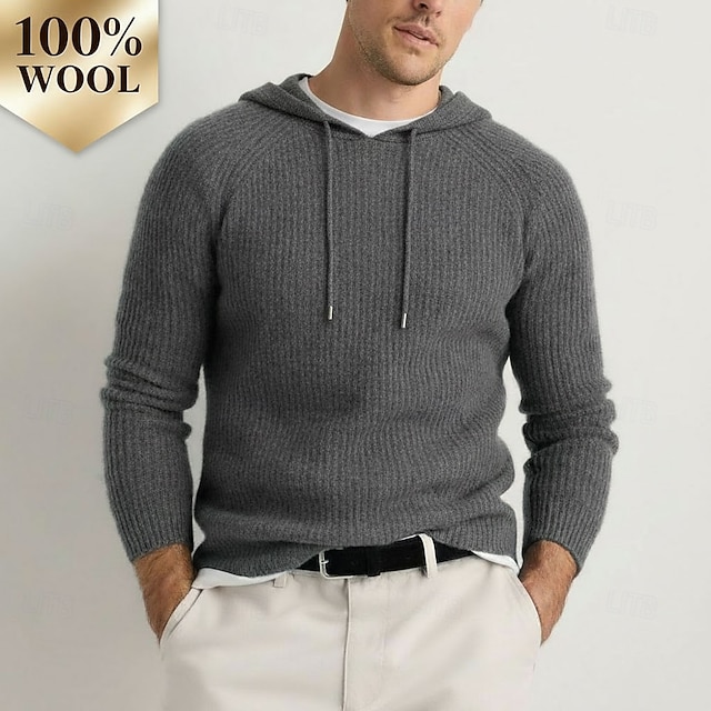 мужской свитер из чистой шерсти премиум-класса, кашемир, классический трикотажный свитер с капюшоном и завязками, мягкий, теплый, дышащий #10320761
