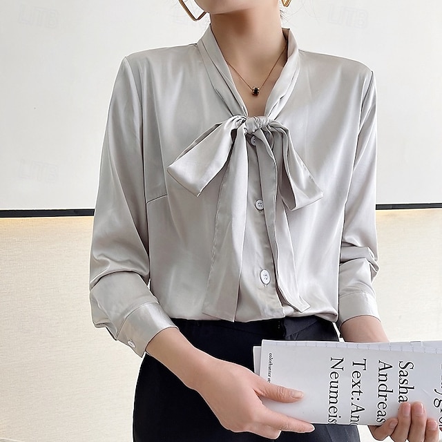 Жен. Рубашка Elegant Атласный верх Шелковая рубашка Пуговицы Сплошной цвет Элегантный стиль Стиль Длинный рукав V-образный вырез Обычные топы Повседневные Офис Праздники #10447639