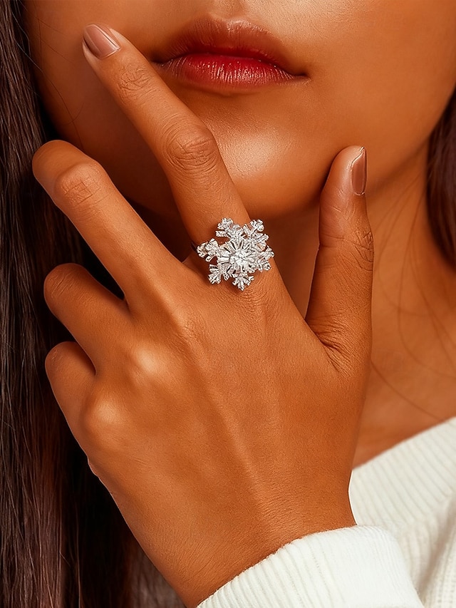 Пол:Жен.,Материал:Сплав,Стиль:Рождество,Модные украшения,Элегантный стиль,Тип украшения:Кольцо,Форма:Снежинка,Указанный размер кольца:Регулируется,