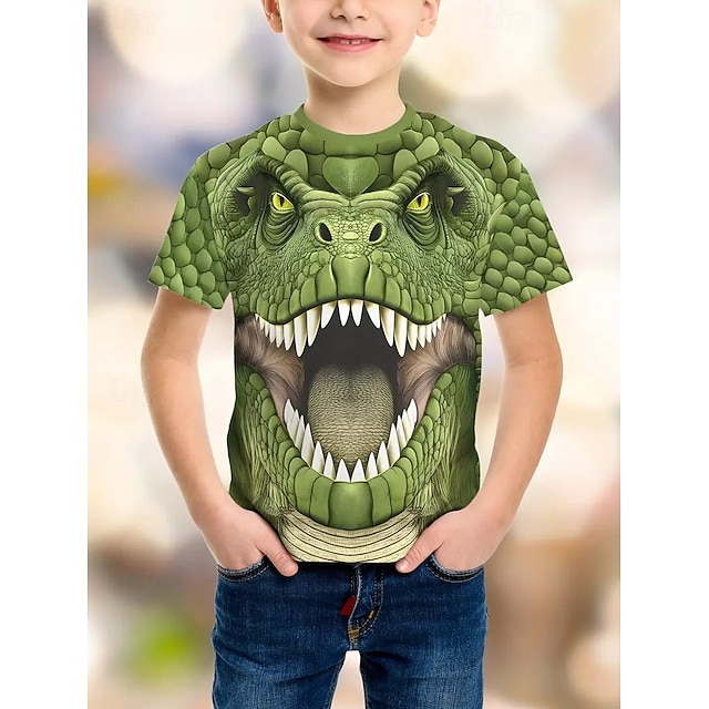 Мальчики 3D Графика Динозавр Футболка С короткими рукавами 3D печать Лето Весна Спорт Мода Уличный стиль Дети 4-12 лет Вырез под горло на открытом воздухе Повседневные Стандартный #11312968