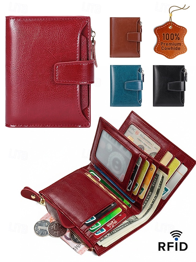 Женский кошелек из натуральной кожи с защитой от RFID, вместительный, на молнии, для нескольких карт, классический стиль, разноцветный, идеально подходит для повседневного использования, путешествий, покупок и в качестве подарка. #11346205