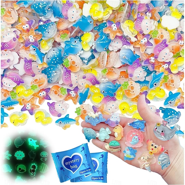 Миниатюрный набор светящихся в темноте фигурок морских животных из смолы, набор из 50/100/200 штук в пакетиках-сюрпризах, крошечные морские животные, рыбки, черепахи, дельфины, морские звезды и многое другое, для рукоделия, сказочного сада, домашнего деко#11899896