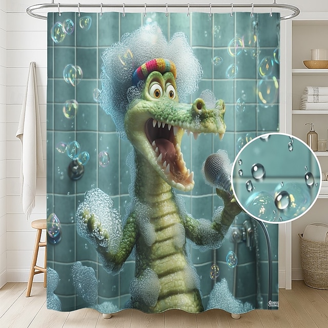 Занавеска для душа с крючками 180 см*180 см (70"*70") Полиэстер washable водонепроницаемая рисунок в ванной комнате декор для ванной с животными крокодил#11935469
