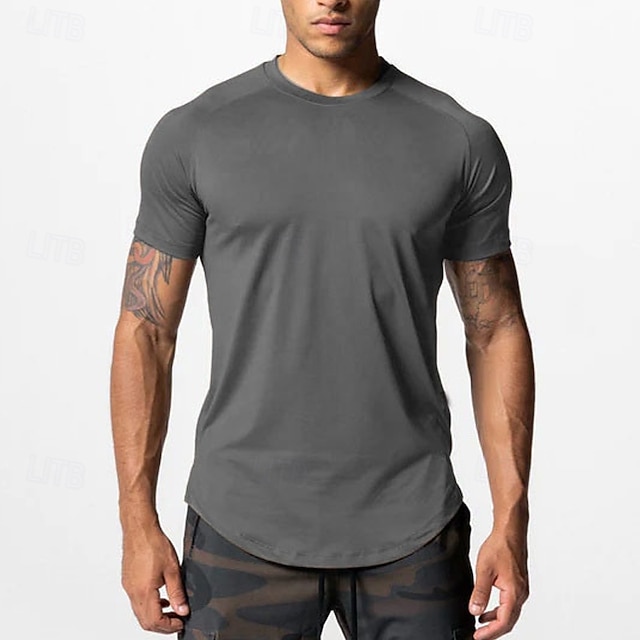 Муж. Футболка для бега Спортивная рубашка С короткими рукавами Футболка Футболка Повседневные Одежда для спорта и отдыха Однотонный Быстровысыхающий Мягкий Дышащий#11958439