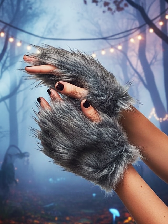 Женские пушистые перчатки в виде лапы оборотня – аксессуары для косплея на Хэллоуин, пушистые варежки в виде когтей монстра для вечеринок и нарядов#12124381