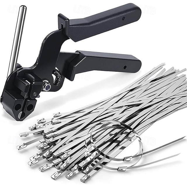 Пистолет для кабельных стяжек из нержавеющей стали со 100 металлическими стяжками длиной 11,8 дюймов, специальный инструмент для затягивания и обрезки стальных стяжек, детали для забора из#12572156