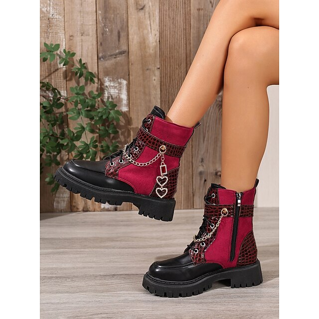 Модные армейские ботинки на массивном каблуке с цепочкой в форме сердца – бордовые и черные #12689760