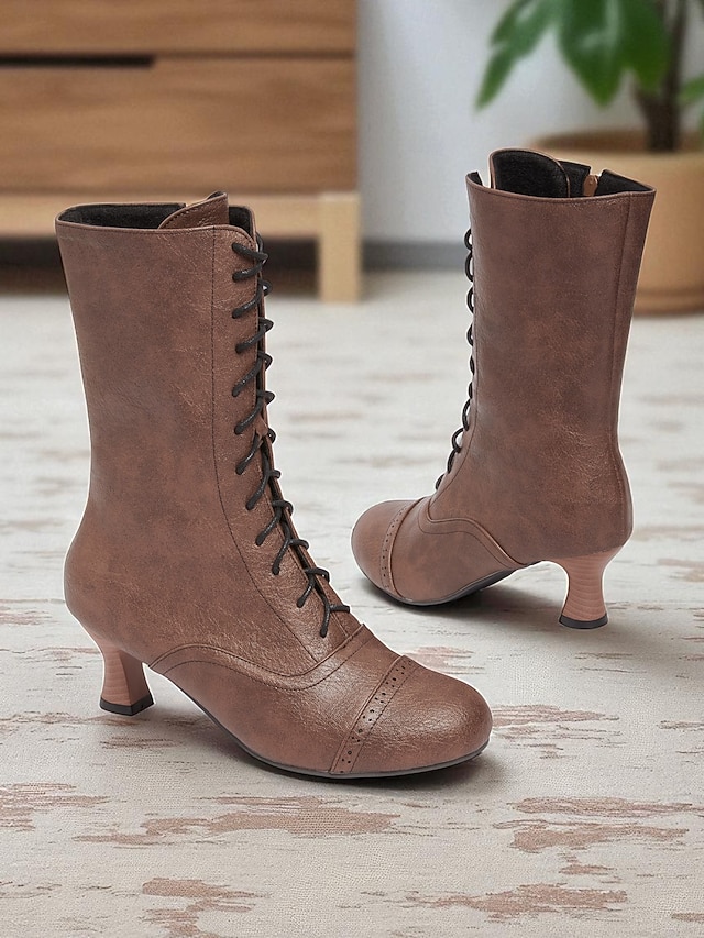 Женские коричневые ботильоны из искусственной кожи в эдвардианском стиле со шнуровкой, винтажные полусапожки на среднем каблуке 1950-х годов для костюмированных выступлений, театра и повседневной носки в стиле ретро #12803380