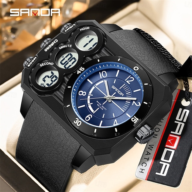 SANDA Мужчины электронные часы На открытом воздухе Мода Повседневные часы Наручные часы Светящийся будильник С тремя часовыми поясами Календарь ТПУ Часы #13040699