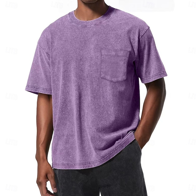 Мужчины Футболка Рубашка из 100% хлопка с кислотной стиркой С короткими рукавами Короткие рукава "Круглый вырез ""под горло""" Лето Все сезоны Сплошной цвет Винтаж Уличный стиль Оригинальный рисунок #13223134