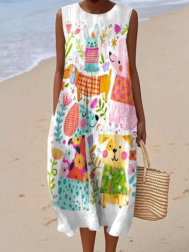 Жен. Платье средней длины Платье прямого кроя Сарафан Платье A-силуэта Отпуск На каждый день Богемный Пляж На выход Свободное облегание Графика Геометрический принт Без рукавов #13246673