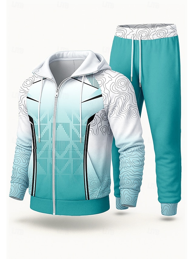 Муж. Толстовка Спортивный костюм Спортивный костюм из двух частей Кулиска Застегнуться Геометрический принт Наборы одежды Осень Зима Синий Назначение На открытом воздухе Путешествия Легкость Мода#13402184