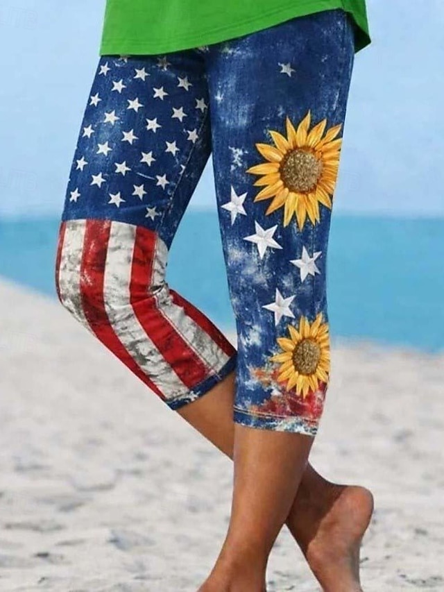 День независимости Патриотические женские капри леггинсы отпуск гавайские стильные до колена средней талии графического национального флага комфортные эластичные отпуск формальный улица синий белый#13408792
