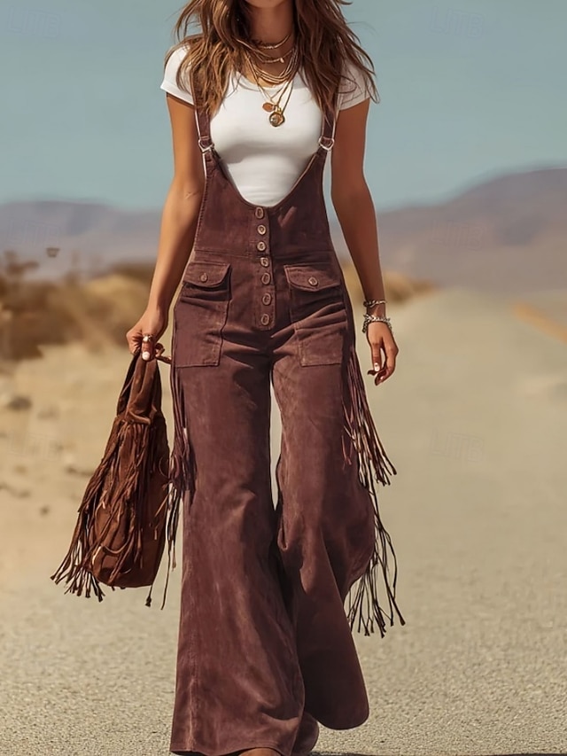 Жен. Брюки карго Широкие Биб Колготки Комбинезон Мода Уличный стиль На каждый день Полная длина Завышенная Полотняное плетение С кисточками Карман удобный Неэластичная #13923778
