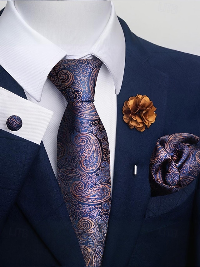 Мужской рождественский комплект галстуков, многоцветный, стильный цветочный узор, с запонками и нагрудным платком для официальных мероприятий#13975888