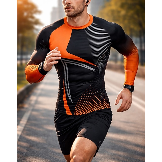 Муж. Футболка для бега Компрессионная футболка 3D печать Длинный рукав Основной слой Весна Осень Геометрический принт Быстровысыхающий Сжатие видеоизображений Для тренировки Power Flex Влагоотводящие#14085233