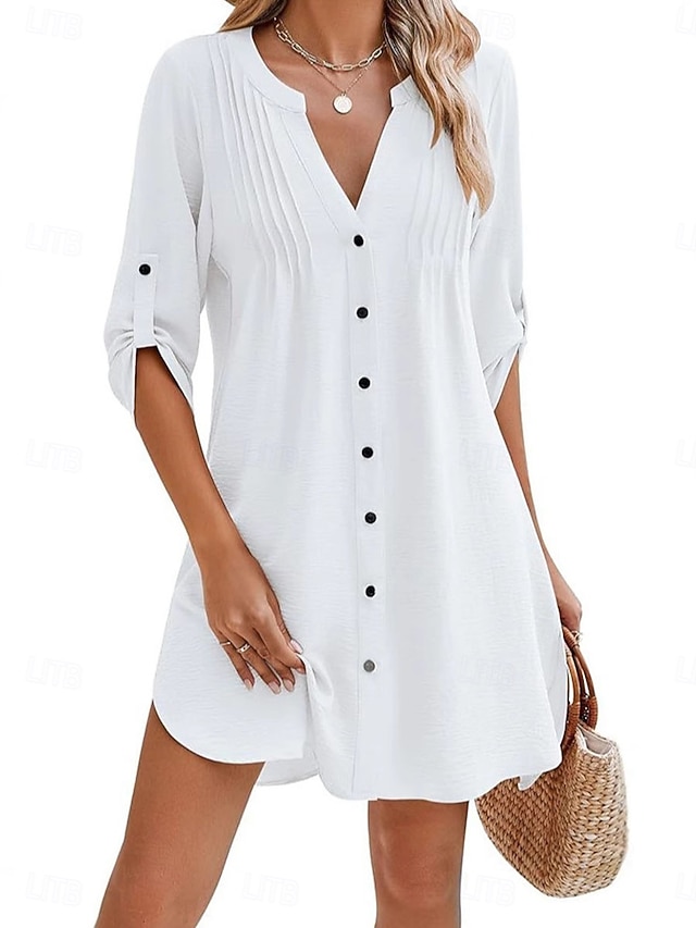 Жен. Мини-платье Белое платье пляжное платье Черное платье Накидка Элегантный стиль Мода Классика Повседневные на открытом воздухе Пляж Стандартный Полотняное плетение Длинный рукав V-образный вырез #14115751