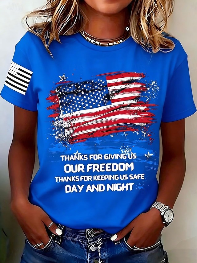 День независимости США Жен. Футболка С принтом Графика Флаг Буквы Винтаж Стиль Классика С короткими рукавами Вырез под горло Обычные топы Повседневные Синий Черный Красный Зеленый Бежевый Лето Весна #14299140